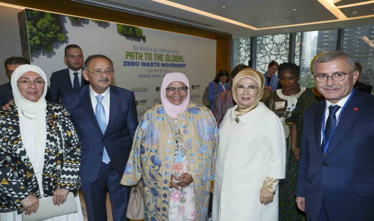 Emine Erdoğan, Birleşmiş Milletler (BM) 78. Genel Kurulu çerçevesinde New York Türkevi’nde devlet başkanı eşleri, Birleşmiş Milletler’in (BM) üst düzey yöneticileri, diğer ülke diplomatları ve New York Belediye Başkanı Eric Adams’ın hazır bulunduğu programda "Küresel Sıfır Atık Hareketine Doğru" isimli etkinlikte konuştu. "İnsanlık ailesini Sıfır Atık İyi Niyet Beyanı’nı imzalayarak yarın değil, bugünden değişimin bir parçası olmaya davet ediyorum. Bugün ülkemde ektiğimiz sıfır atık tohumunun gölgesinin dünyayı ferahlatacak bir çınara dönüşmesine tanıklık ediyoruz" diyen Emine Erdoğan, "İklim krizi için kritik eşik kapımıza dayandı ve bugün konuşma, değerlendirme faslını geride bırakıp acil eylem planlarını uygulamak mecburiyetindeyiz" ifadesini kullandı.
