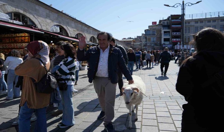 Ramazan Bayramı öncesi alışveriş telaşının yaşandığı Eminönü’ne gelen bir vatandaşın yanında gezdirdiği "Dadaş" isimli koç ilgi odağı oldu. Kalabalığın içindeki koçu gören vatandaşlar şaşkına dönerken, kimisi ise fotoğraf çektirmeyi ihmal etmedi. Öte yandan Eminönü’ndeki bayram alışverişi yoğunluğu havadan görüntülendi.