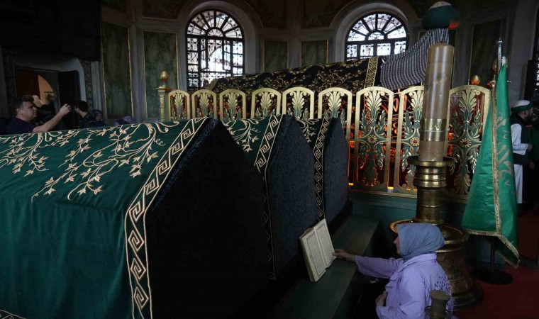 Bursa’da Peygamber Efendimiz Hazreti Muhammed’in (SAV) torunlarından Emir Sultan Hazretleri’nin türbesinin sanduka örtüsü, 10 aylık yapım sürecinin ardından Mevlid Kandili’nde dualarla yerine serildi.