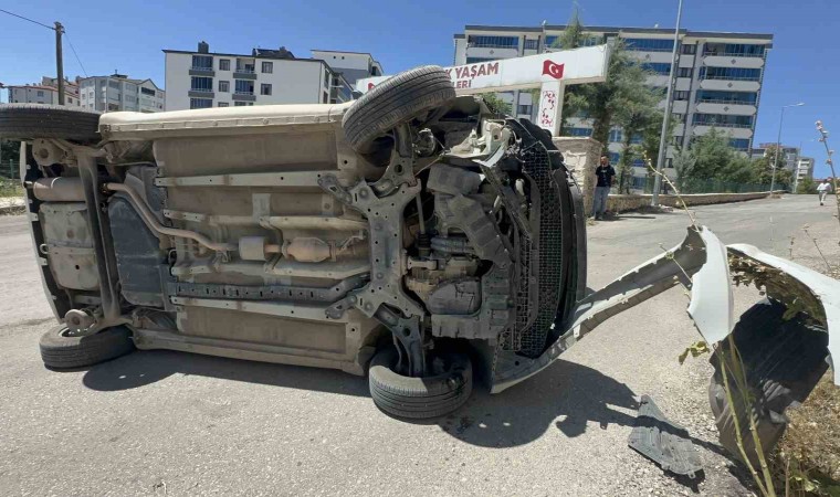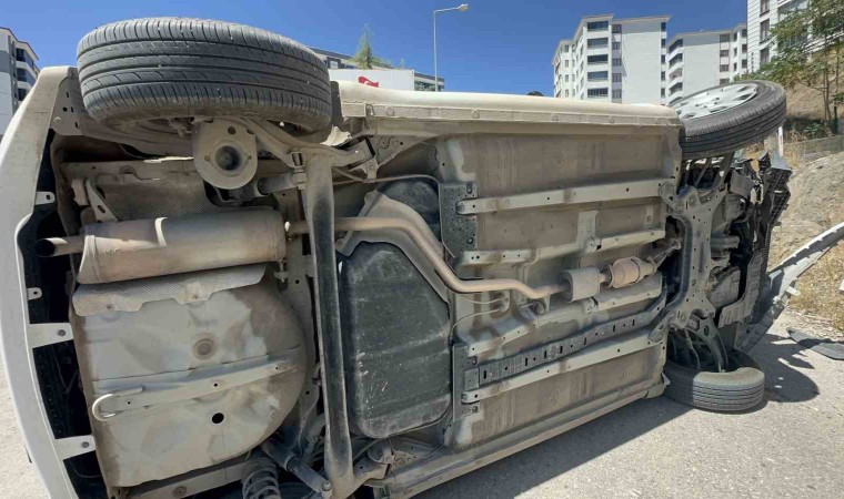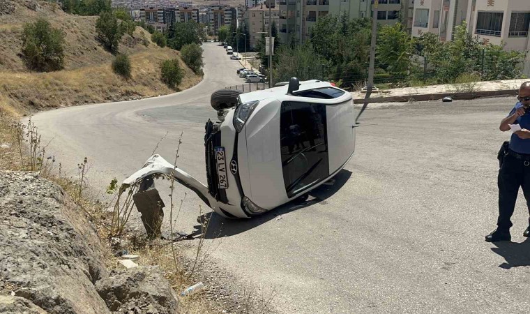 Elazığ’da sürücüsünün kontrolünden çıkan otomobil yan yattı. Sürücü emniyet kemeri sayesinde kazadan yara almadan kurtuldu.
