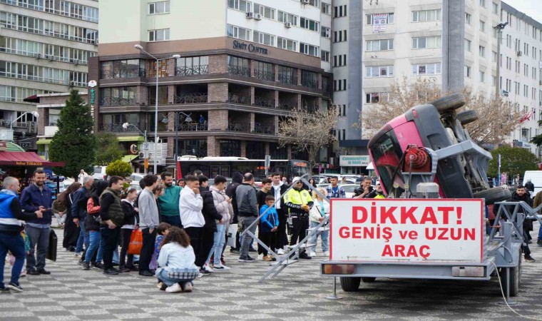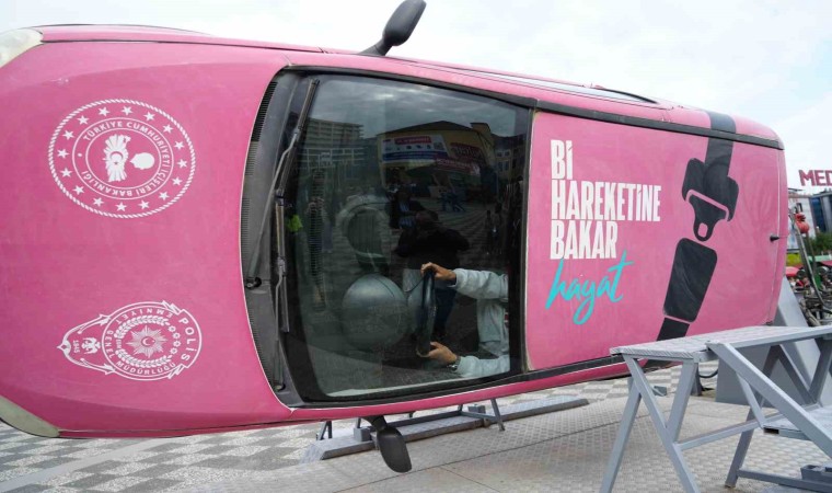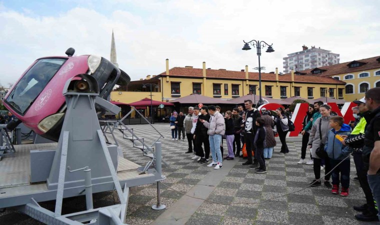 Samsun’da vatandaşlar, emniyet kemeri kullanımının önemini, simülasyon aracında tepetaklak olunca anladılar.