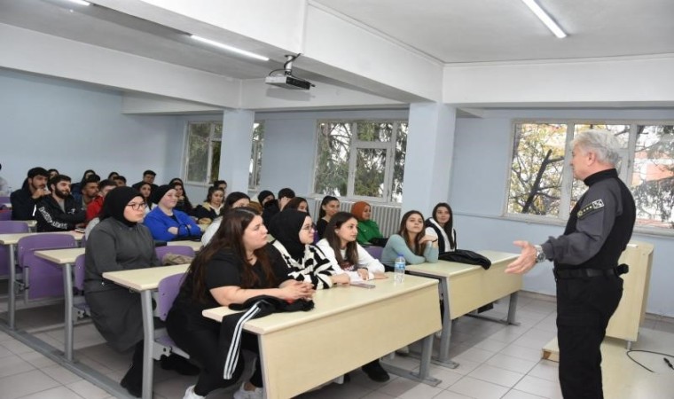 Emniyet Müdürü Güzelyazıcı, öğrencilerin yoğun ilgisi ve katılımı ile gerçekleşen eğitimde katılımcılardan gelen sorular da cevaplandı.
