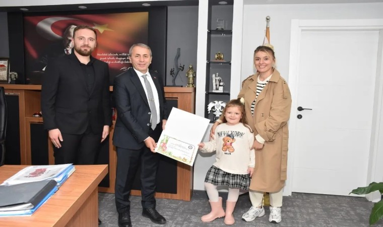 Daha sonra Emniyet Müdürü Kurt, Elif Liya Ayazlı’ya teşekkür belgesi ile çeşitli hediyeler verdi.