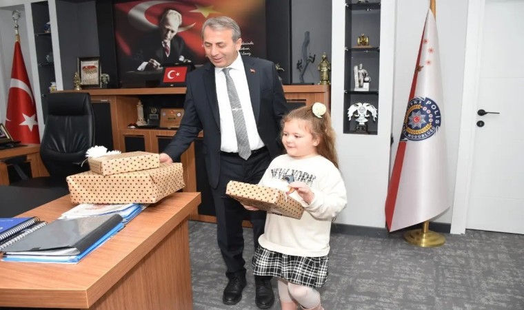 Küçük Elif ise, Emniyet Müdürü Kenan Kurt ile tanışmaktan dolayı mutlu olduğunu belirterek hediyeler için teşekkür etti.