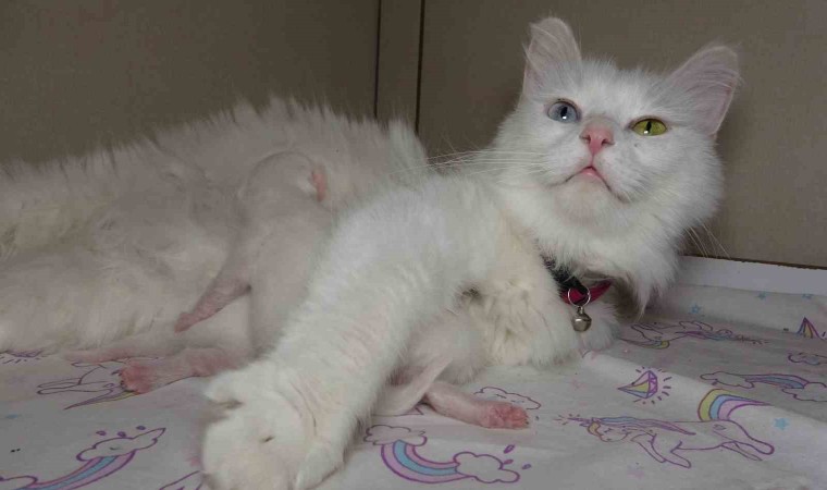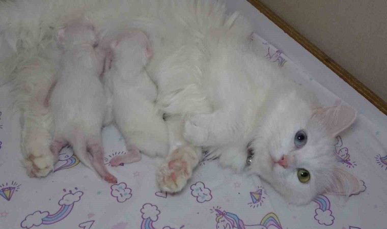 Van’da 2022 yılında düzenlenen ‘Van Kedisi Güzellik Yarışması’nda birinci olan ve daha önce iki kez anne olan ‘Mia’ isimli kedi, bu yıl da birbirinden güzel 2 yavru daha doğurdu.