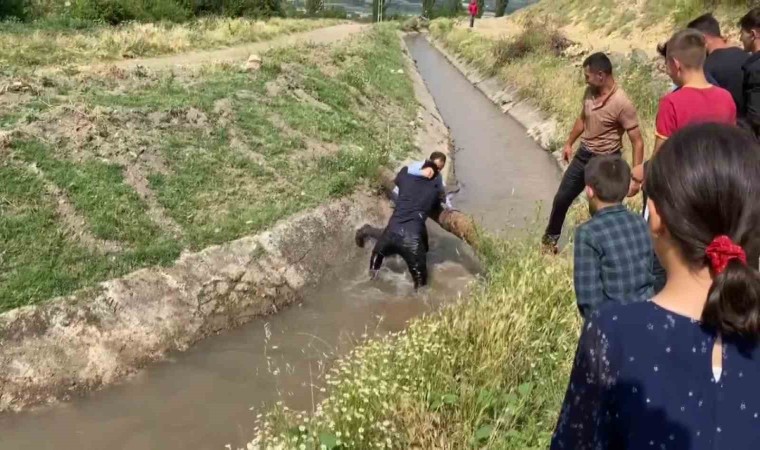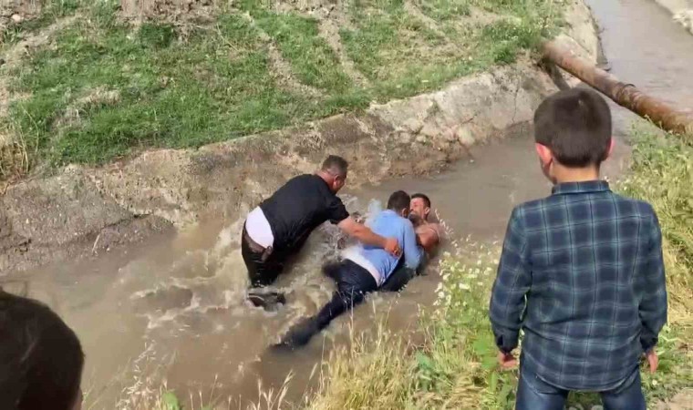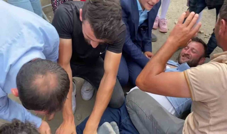 Amasya’da bir düğünde köylüler tarafından yakalanarak merdivene bağlanan düğün sahipleri sonra da sulama kanalına atıldı. Serin suların içinde güreşe dönüşen en sulu düğün eğlencesi renkli görüntülere sahne oldu.