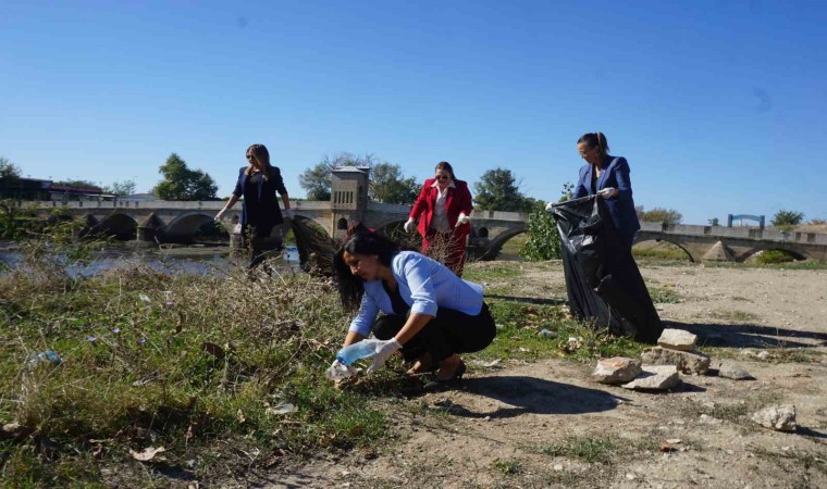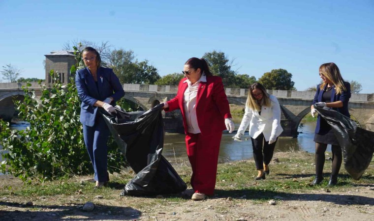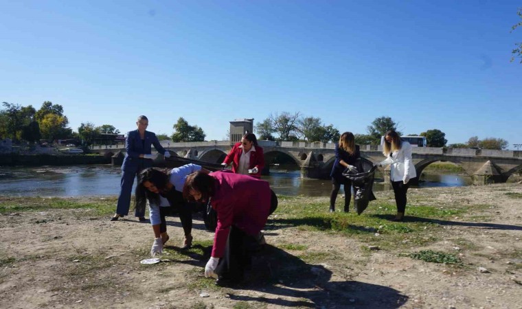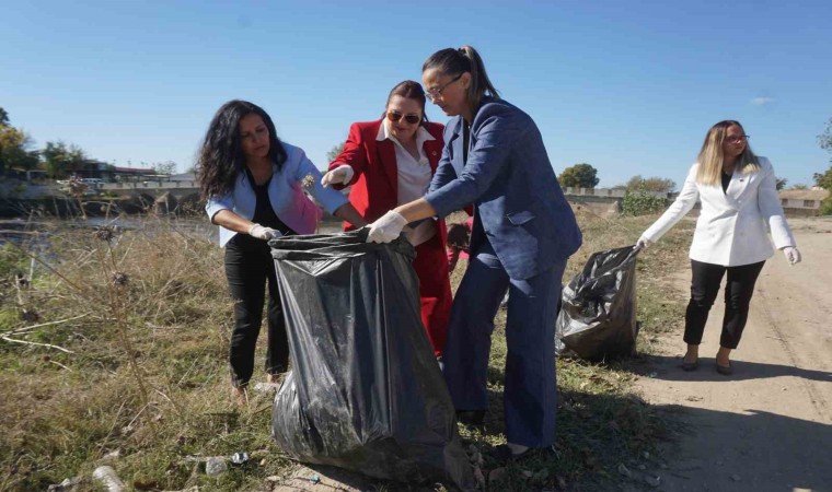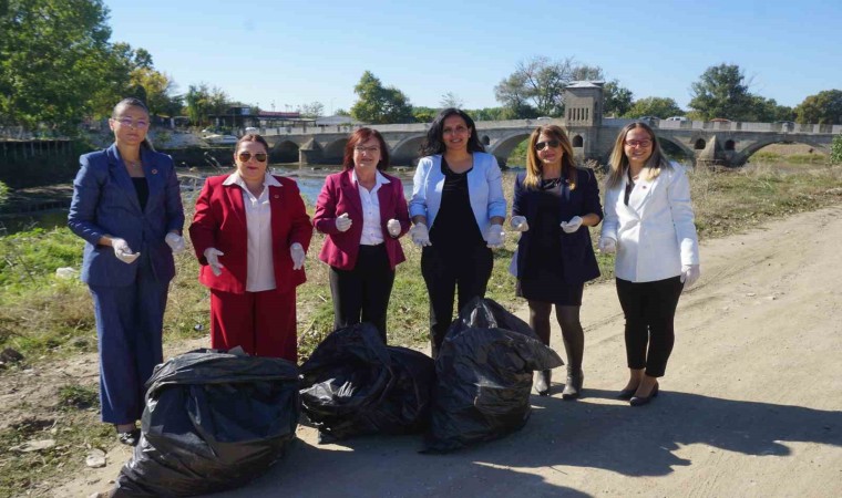 Sık sık kirlilikle gündeme gelen Tunca Nehri çevresinde bir araya gelen kadın muhtarlar, takım elbiseleri ve topuklu ayakkabıları ile temizlik yaparak farkındalık oluşturdu.