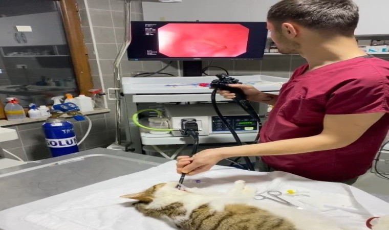 Bilecik’ten yabancı cisim yutma şüphesiyle Osmaneli Belediyesi Hayvan Barınağı ve Hayvan Hastanesi’ne getirilen kedi hemen uyutularak endoskopi yapıldı. Veteriner Sağlık Teknisyeni Bahadır Kaya tarafından endoskopi kapılan kedinin midesinden sindirilemeyen parçalar çıktı. Yapılan operasyon hakkında bilgi veren Kaya, "Kedimiz Bilecik merkezden şiddetli kusma ve yemek yememe şikâyetiyle geldi. Daha sonra Veteriner Hekim Abdullah Tetik bey ile endoskopi yapılmasına karar verdik. Endoskopi sonucunda da sindirilmeyen parçalar ortaya çıktı midesinde. Daha sonra parçaları midesinden endoskopi yoluyla çıkardıktan sonra kedimiz tekrardan yemek yemeye başladı ve şu an sağlığına kavuştu" dedi.