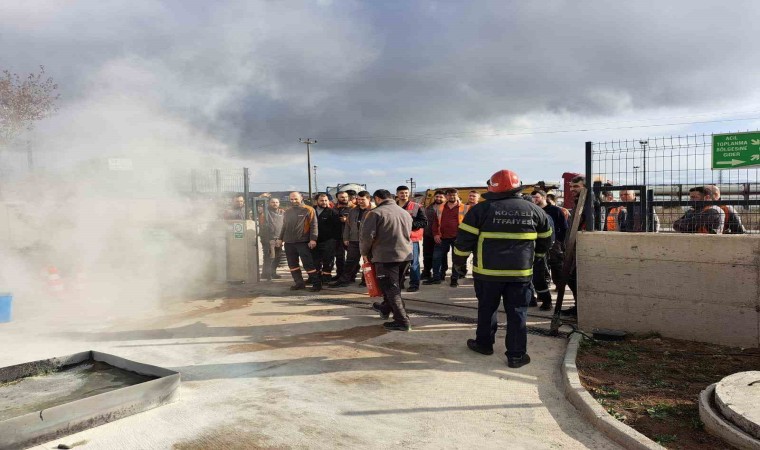 Kocaeli itfaiyesi, olası bir durumun önüne geçmek amacıyla endüstriyel tesis acil durum ekiplerine teorik ve pratik olarak eğitim veriyor.
