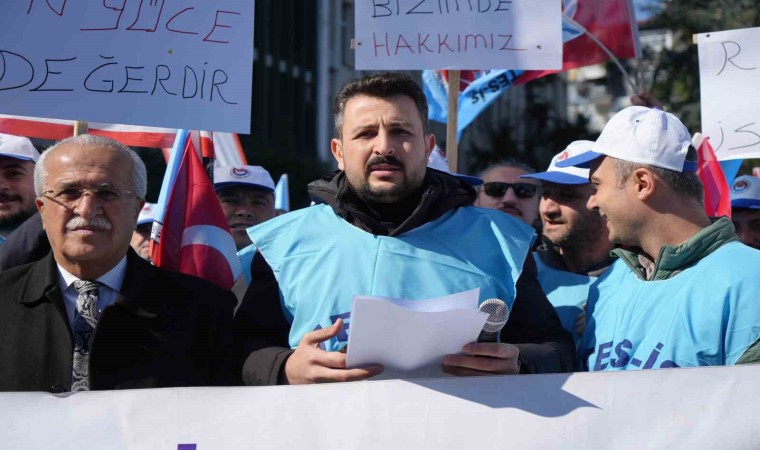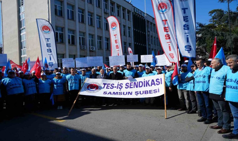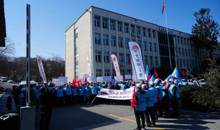 Samsun’da enerji işçileri, Devlet Su İşleri (DSİ) 7. Bölge Müdürlüğü önünde toplanarak ’refah payı’ talebinde bulundular.