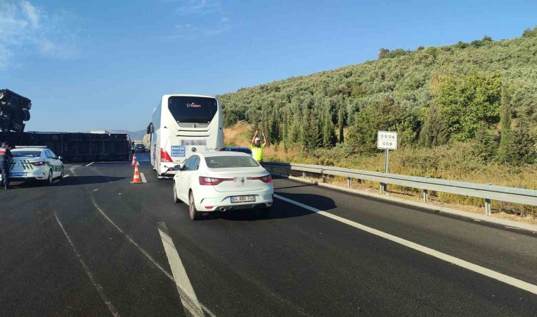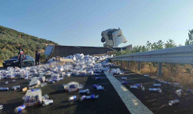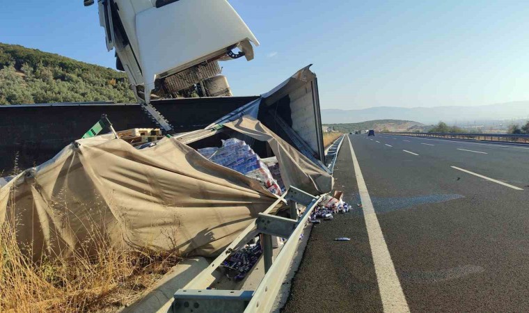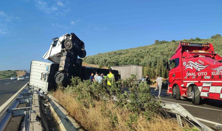 Yolun sağındaki bariyere çarpan tır daha sonra yol ortasına devrilerek sürüklenerek orta refüje çarptı. Kaza sonrasında tırın kupası şaha kalkarken, tır dorsesinde bulunan yaklaşık 25 ton enerji içeceği yola saçıldı. Kaza sonrasında olay yerine sağlık ve itfaiye ekipleri sevkedildi. Hafif yaralı olan tır sürücüsü Ali Güler ambulansla Gemlik Devlet Hastanesine kaldırılarak burada tedavi altına alındı.