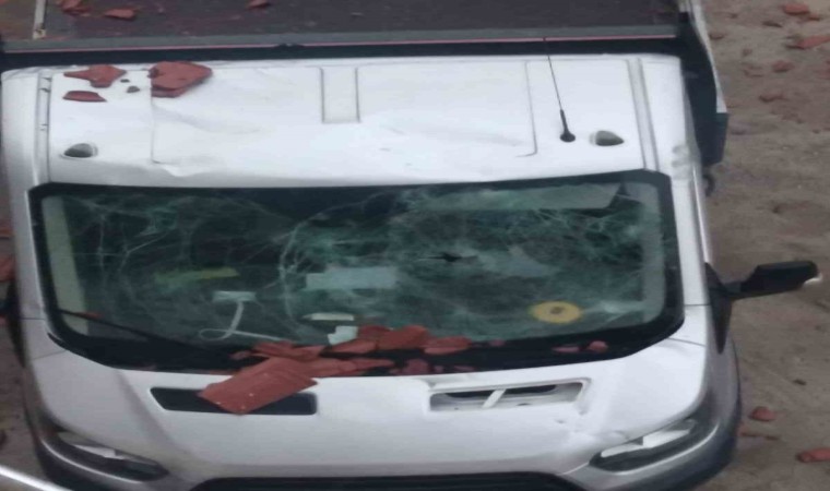 Edirne’nin Enez ilçesinde etkili olan dolu yağışı ve şiddetli rüzgar, araçlara ve evlerin çatılarına zarar verdi.
