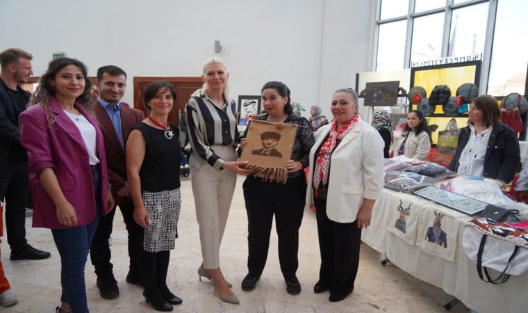 Cumhuriyetin 100’üncü yılına özel temayla ziyaretçilerin beğenisine sunulan Bilecik Engelsiz Yarınlar Derneği’nin (BİEYDER), sergideki çalışmalarını inceleyen Vali Aygöl ve Başkan Subaşı, emeği geçen herkese teşekkürlerini ileterek çalışmaları inceledi. Sergiye katkı sağlayan vatandaşlar ile fotoğraf çektiren Vali Aygöl, "Sosyal sorumluluk bilinciyle engelli bireylerin hayat mücadelelerinde yanlarında olmak, onların önündeki engelleri kaldırmak, onları üretkenliğe ve hayattan tat almaya teşvik etmek adına yapılan her çalışmaya destek vereceğiz" ifadelerini kullandı. El emeği ile yapılan Mustafa Kemal Atatürk eserini görme engelli bir kadın vatandaş Başkan Subaşı’na hediye etti. Hediye karşısında mutluluğunu dile getiren Başkan Subaşı, ’’Aldığım hediye beni çok mutlu etti. Harika bir eser. Burada yapılan her şey eşsiz. Bana hediye edilen Mustafa Kemal Atatürk’ün bu tablosu karşısında Çiğdem Kocaman’a teşekkürlerimi sunuyorum. Empati, sevgi ve dayanışmanın hakim olduğu engelsiz bir toplum için hep birlikte daha güçlü bir Bilecik inşa etmek için çalışmaya devam edeceğiz’’ ifadelerini kullandı.