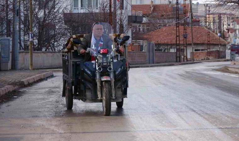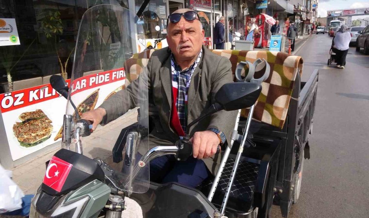 Suudi Arabistan’da 29 yıl önce çalıştığı inşaatın 8’inci katından düşerek engelli kalan Mehmet Taşçı, memleketi Yozgat’ın Sorgun ilçesinde hayırseverlerin ve fırıncıların katkısıyla aldığı ekmek başta olmak üzere temel ihtiyaç malzemelerini 3 tekerli engelli aracıyla ihtiyaç sahiplerine ulaştırıyor.