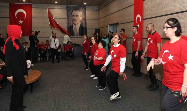 Osmangazi Belediyesi Engelliler Bakım Merkezi (OBAM)’da eğitim gören özel ihtiyaç sahibi bireyler, TUSAŞ’a düzenlenen hain terör saldırı nedeniyle erteledikleri 29 Ekim Cumhuriyet Bayramı kutlama programını gecikmeli de olsa gerçekleştirmenin mutluluğunu ve gururunu yaşadı. Cumhuriyetin 101’inci yılını, söyledikleri marşlar ve hazırladıkları koreografi ile kutlayan engelli bireyler, daha sonra üzerinde Atatürk’ün fotoğraflarının yer aldığı siyah pelerinleri giyerek ölümünün 86’ıncı yılında Atalarını saygı, minnet ve özlem ile andı.