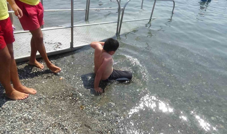 Edremit Belediyesi’nin özel engelli aracı ile İvrindi ilçesine bağlı Haydar Mahallesi’ndeki evinden alınan Hilmi Nuri Güleç; anne ve babası ile Altınkum Mahallesi sahilindeki engelli vatandaşların kullanımına uygun rampadan denize girdi. İlk kez denize girmenin mutluluğunu yaşayan Güleç keyifli ve mutlu bir gün geçirdi.