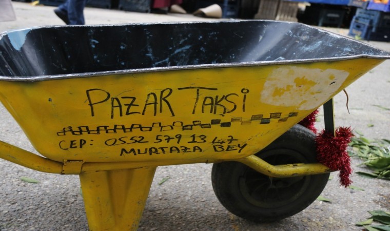 Mardin’de anne babasız büyüyen engelli genç Murtaza Sünek, üstüne ’pazar taksi’ yazdırdığı el arabası ile 9 yıldır geçimini pazar alışveriş torbalarını taşıyarak sağlıyor.