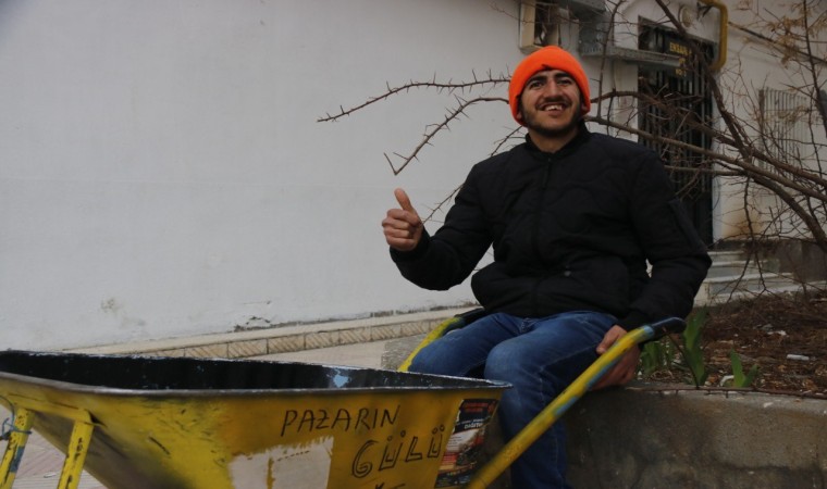 Mardin’de yaşayan, anne babasız büyüyen 21 yaşındaki engelli genç Murtaza Sünek, küçük yaştan itibaren amcasının aldığı el arabası ile evlere pazar torbası taşıyor. Pazarı ve yaptığı işi sevdiğini söyleyen Sünek, "Çocuk yaştan itibaren bu işi yapıyorum. Amcam bana bir el arabası aldı. Daha sonra çalışıp parasını ödedim. Haftanın 4 günü pazarlarda insanların torbalarını evlere taşıyorum. Mesleğimi, pazarda çalışmayı çok seviyorum. Küçük yaşta annemi kalp krizinden, babamı da trafik kazasında kaybettim. Şimdi ağabeyimle birlikte yaşıyorum. Evimi geçindiriyorum. Ev için alışveriş yapıyorum" dedi.