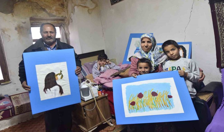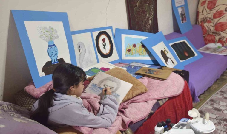 Bitlis’in Ahlat ilçesinde yaşayan yürüme engelli Zehra Gelmez, resim yaparak hayata tutunuyor.