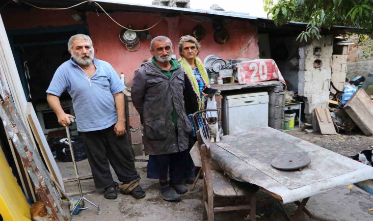 Adana’nın merkez Seyhan ilçesine bağlı Ziyapaşa Mahallesi’nde 53 yaşındaki bedensel engelli Osman ve 48 yaşındaki zihinsel engelli Yılmaz, 46 yaşındaki KOAH hastası kız kardeşleri Hörü ile birlikte babalarından kalma çatısı akan, döşeme tahtaları kırılmış, pencerelerinde cam bulunmayan, tuvaleti açıkta, içerisi adeta çöplüğe dönüşmüş viranede kalıyor. Zihinsel engelli Yılmaz gün boyu dışarıda gezerken, bedensel engelli Osman ise kanepede yaşamını sürdürüyor. KOAH hastası Hörü ise hastalığı nedeniyle ev işlerini yapamıyor.