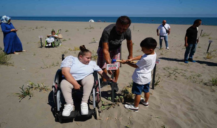 Samsun’da engelli vatandaşlar kendi yaptıkları uyarı levhalarını, sahilde çiçek açan ve ‘koparma cezası 387 bin 141 TL’ olan endemik bitki kum zambaklarının etrafına çaktı.