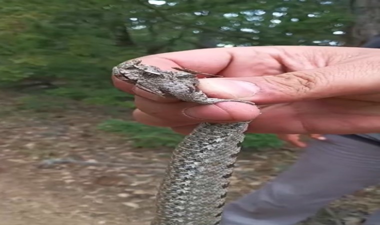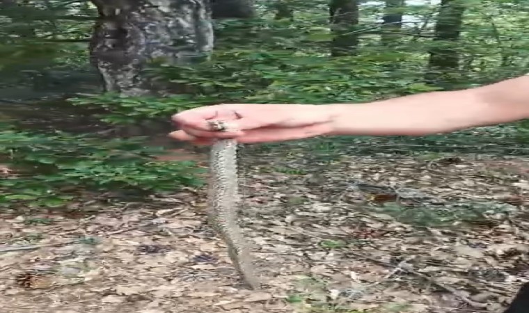 Kastamonu’nun Taşköprü ilçesinde orman işçileri tarafından engerek yılanı görüntülendi. Yılanı gören işçiler elleri ile tutup tekrar doğaya saldı.