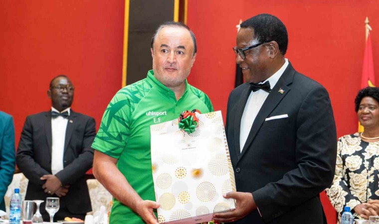 Karşılaşmanın ardından Malavi Cumhurbaşkanı Dr. Lazarus McCarthy Chakwera, Kenya Teknik Direktörü Engin Fırat’a hediye verdi.