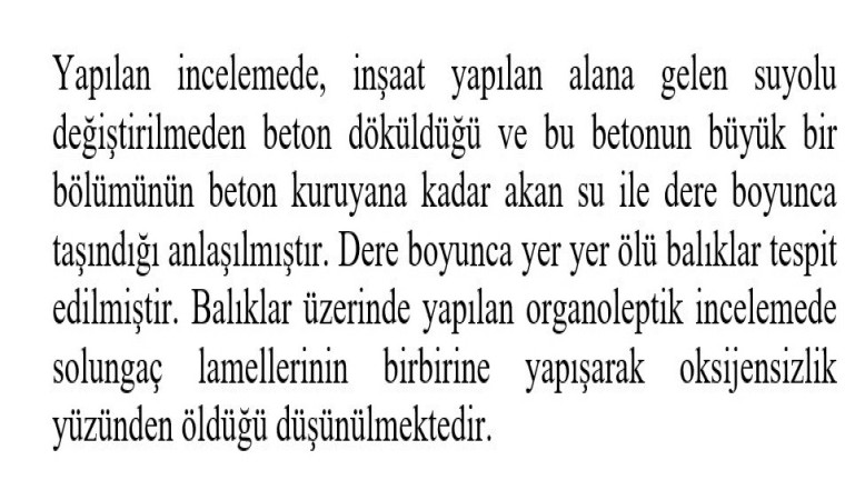 Samsun’un 19 Mayıs ilçesi Engiz Çayı’nda yaşanan balık ölümlerinin, tersip bendi için dökülen betonun suya karışmasından kaynaklandığı tespit edildi.