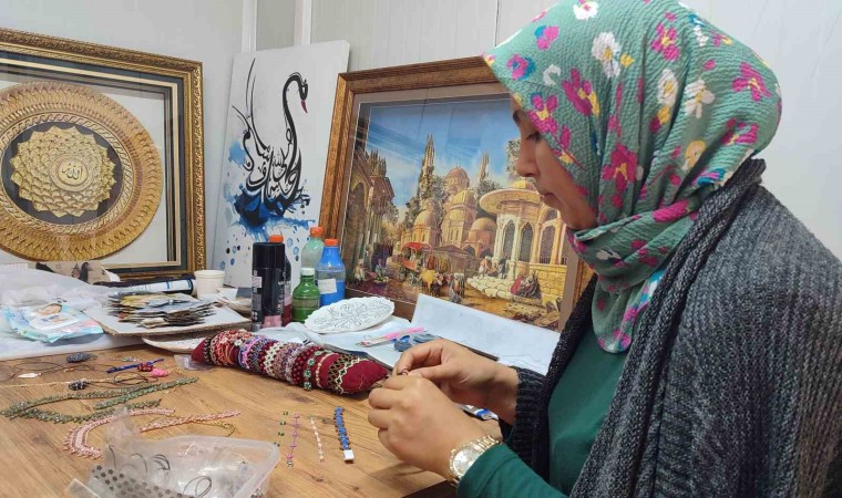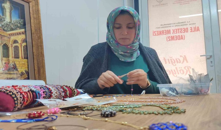 Türkoğlu ilçesinde yaşayan 38 yaşındaki Havva Kocalar, ilçedeki, aile destek merkezinde yaptığı takılar ve ürünlerle birlikte depremin acısını unutmaya çalışıyor. Kocalar, "Çok çaresiz günler yaşadık. O çaresizliği sizlere anlatamam. Çaresizlik diye bir kelime duymuştuk ama o çaresizliği yaşayarak öğrenmek daha acı" dedi.