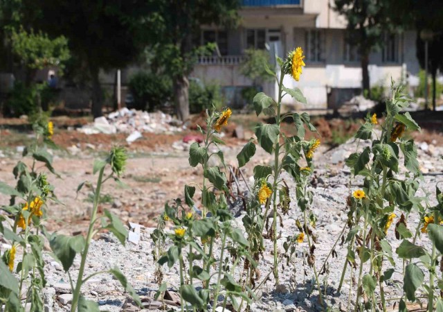 Enkaz altında kalıp boy veren ay çekirdekleri çiçek açtı