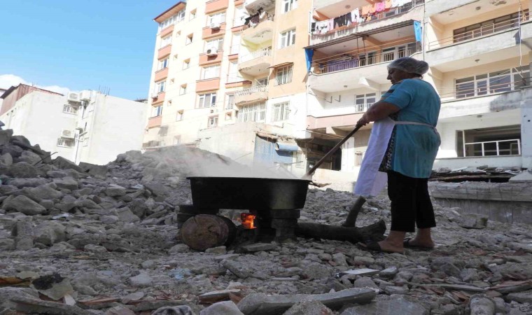 Kahramanmaraş merkezli depremlerde ağır hasar alan Hatay’da yaralar sarılıyor. Hatay’ın Samandağ ilçesinde yaşayan 4 çocuk annesi 62 yaşındaki Müfide Yılmaz, yaklaşık 40 yıldır yöresel ürünler üretiyor. Asrın felaketinin ardından hayata dair umudunu yitirmeyen Yılmaz, enkaza dönen memleketinde ümitlerini yeniden yeşertti. Yılmaz, iş yerinin yanında bulunan binaların yıkılmasıyla ortaya çıkan enkaz alanlarına ocak kurarak yeniden üretime başladı. Hayata tutunma azmiyle takdir toplayan kadın, işini zevkle yaptığını söyledi.