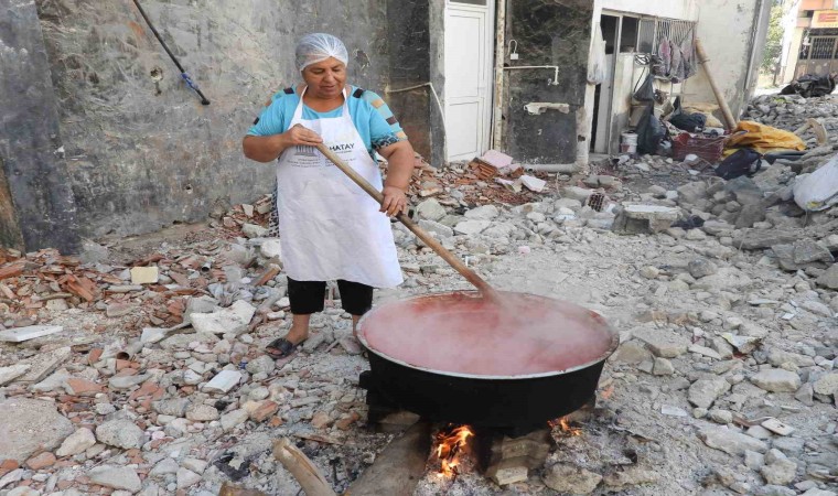 Hatay’da yaşayan depremzede Müfide Yılmaz, binalardan geriye kalan enkaz alanlarında yöresel ürünler üreterek hem aile ekonomisine katkı sağlıyor hem de hayata dair umudunu yitirmiyor.