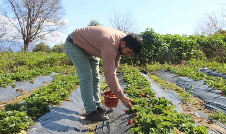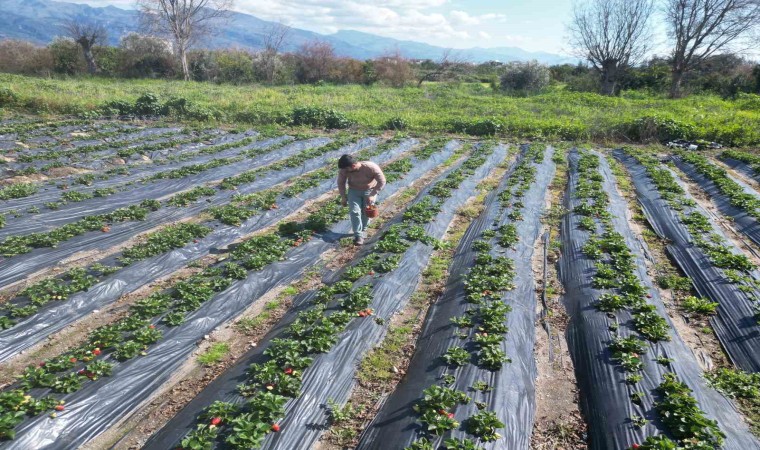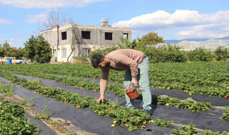 Depremin vurduğu Hatay’ın bereketli topraklarında çilek hasadı başladı. Çilek, tarlada 100 TL’den alıcı buluyor.