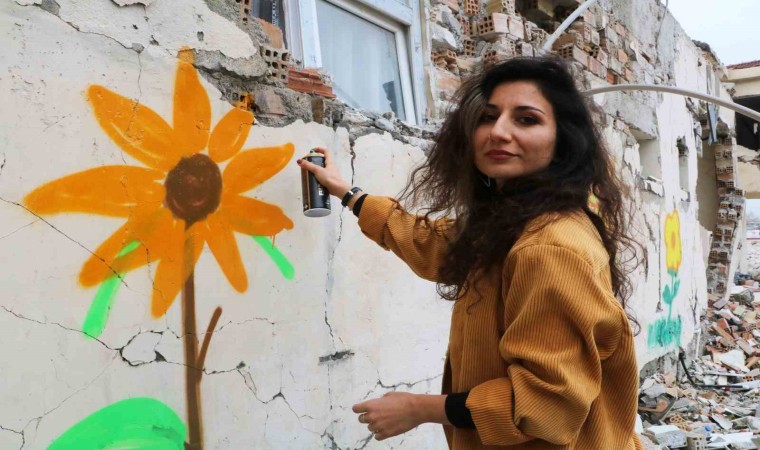 Depremin vurduğu Hatay’da hasarlı binaların yıkımlarında sona gelindi. Enkaz kent Antakya’da yıkımlarının gerçekleştirilmesi beklenen hasarlı binalara sanatçı Çağla Köseoğlu’nun eli değdi. Hasarlı binalarda 20 farklı noktaya ayçiçeği başta olmak üzere çeşitli çizimler yapan Köseoğlu’nun çalışmalarıyla enkaz kent renklendi.