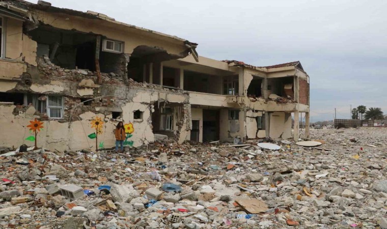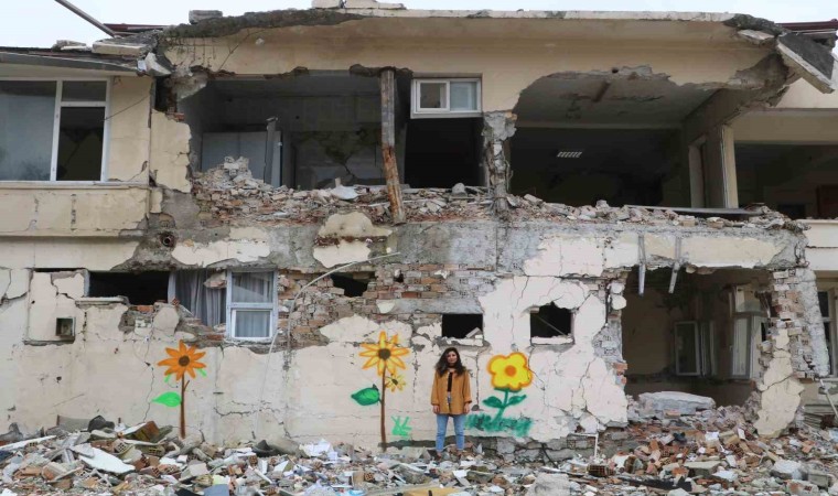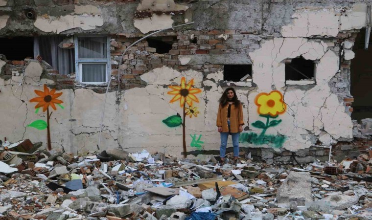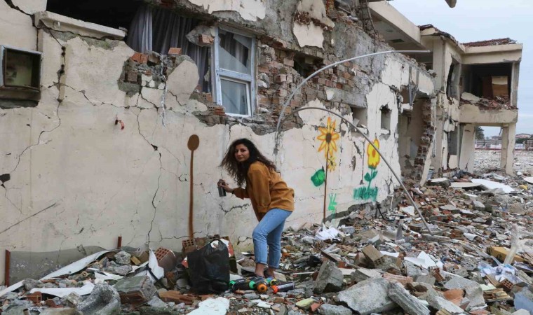 Depremin vurduğu Hatay’da hasarlı binaların duvarları, sanatçı Çağla Köseoğlu’nun yaptığı çizimlerle renklendi.