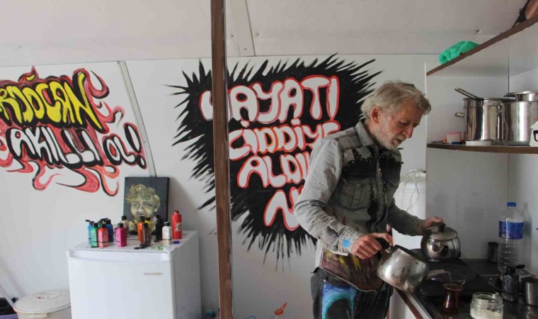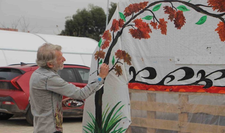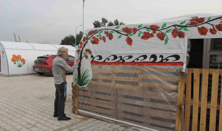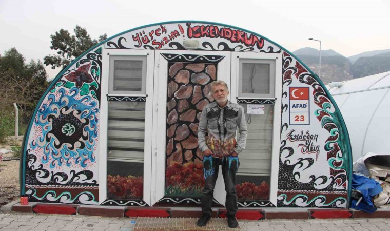 Depremin vurduğu Hatay’da yaşayan Erdoğan Akın, kentte bulunan konteynerleri boyayarak hayatı renklendiriyor.