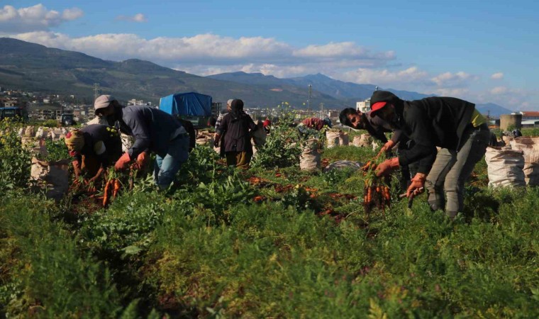 Kahramanmaraş merkezli depremlerden en çok yıkıma uğrayan Hatay’da, yaralar sarılmaya devam ediyor. Türkiye’nin en önemli tarım şehirlerden biri Hatay’ın bereketli Amik Ovası’nda geçtiğimiz aylarda başlayan havuç hasadında sona gelindi. Kırıkhan ilçesinde 4 aydan beri devam eden havuç hasadında tarım işçilerinin zorlu mesaisi ara vermeden sürüyor. Enkaz kentten 81 ile satılan havuç, tarladan 7 ile 12 TL arasında alıcı buluyor. Tarım işçileriyse havucun tonunu bin 300 TL’den topluyor.