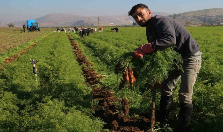 Hatay’ın bereketli topraklarında havucun söküm aşamasına gelmesiyle birlikte tarım işçilerinin zorlu mesaisi başladı. Sarı havuç, Hatay’dan Türkiye’nin 81 iline 5 TL’den satılıyor.