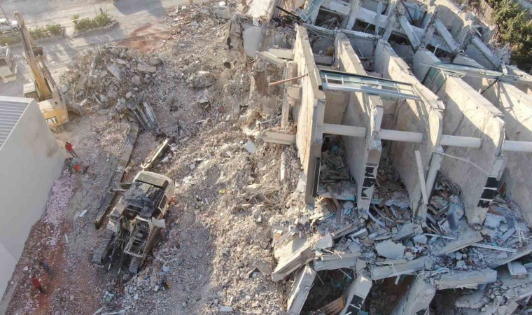 Depremin vurduğu Hatay’da 8 katlı binanın üzerine çöktüğü iş makinesi enkazdan çıkarıldı. Operatöre mezar olan iş makinesi adeta tanınmaz hale geldi.