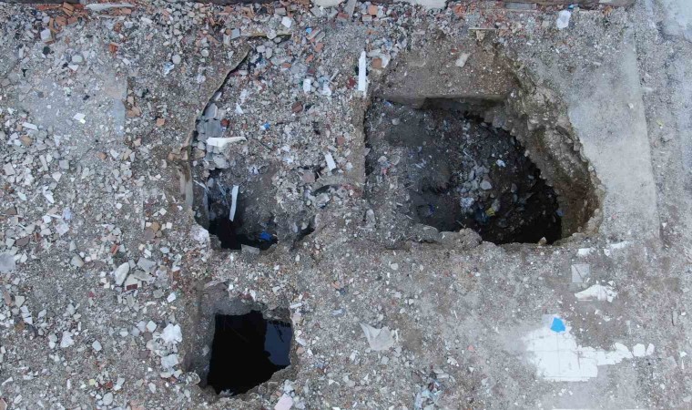 Kahramanmaraş merkezli depremlerde ağır hasar alan Hatay’ın Antakya ilçesinde yıkım çalışmalarında sona gelindi. Antakya’nın Kışlasaray Mahallesi, Saray Caddesi üzerinde bulunan ağır hasarlı binaların yıkımları gerçekleştirildi ve enkazları kaldırıldı. Cadde üzerinde enkazı kaldırılan bir binanın temelindeyse irili ufaklı 3 adet obruk oluştu. Derinlikleri 5 metreyi bulan obruklar, bölge halkı tarafından ilginç karşılandı.