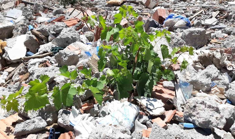 Enkazlarda mısırdan güle, incir fidanından üzüm fidanına kadar birçok ürün yetişti. Enkazlarda birbirinden farklı bitkiler boy göstermeye başladı.