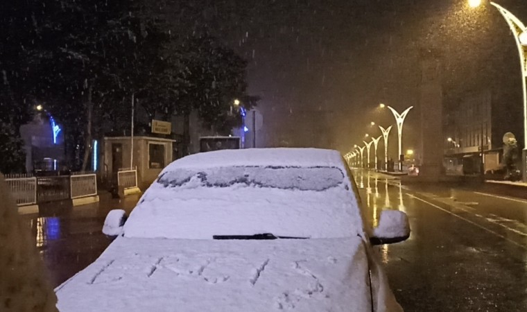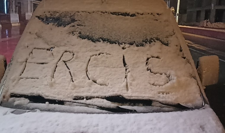 Erciş’te gündüz etkili olan yağmur yağışı gece saatlerinde yerini kar yağışına bıraktı, birçok yerin beyaza büründüğü şehir merkezinde araçların üzerleri karla kaplandı.