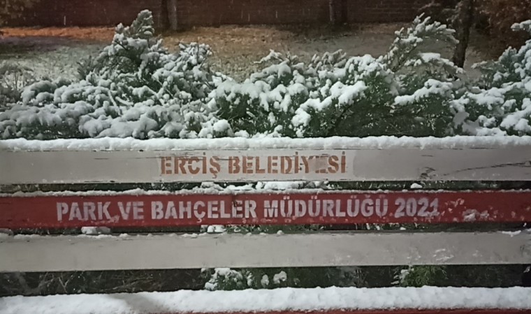 Van’ın Erciş ilçesinde mevsimin ilk kar yağışı bu gece yağmaya başladı.