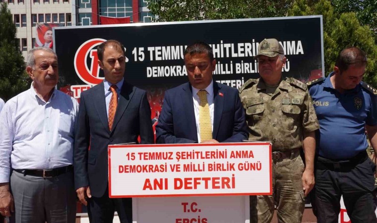 15 Temmuz Demokrasi ve Milli Birlik Günü çerçevesinde Kara Yusuf Camii’nde Cuma namazına müteakip mevlit programı düzenlendi. Program sonrası Erciş Kaymakamlığı tarafından halka lokma tatlısı ikram edildi. Daha sonra kaymakamlık önünde oluşturulan anı defterini halka açan Erciş Kaymakamı ve Belediye Başkan Vekili Nuri Mehmetbeyoğlu, “Kıymetli Ercişliler, çok değerli hemşehrilerim. Bugün 7. yılını idrak ettiğimiz 15 Temmuz Demokrasi ve Milli Birlik Günü’nde ilçemizde farklı etkinlikler yapmaktayız. Türkiye Yüzyılını yaşadığımız bugünleri, 15 Temmuz kahramanlarının vatan ve millet uğuruna vermiş olduğu mücadele sayesinde yaşamaktayız. Milletimiz 15 Temmuz gecesi sokaklarda tıpkı Çanakkale Savaşı’nda olduğu tüm fertleriyle tek yürek olmuş, milli iradesini darbecilere çiğnetmemiştir. 15 Temmuz Demokrasi ve Milli Birlik Günü’nde bir kez daha ebediyete uğurladığımız kahraman şehitlerimizi rahmetle ve minnetle yad ediyorum. Şehitlerimizin kıymetli ailelerine Yüce Rabbimden sabır diliyorum. Gazilerimize Rabbimden sağlık, iyilik ve mutluluklar diliyorum” ifadelerini kullandı.