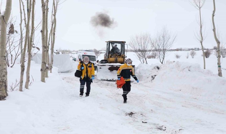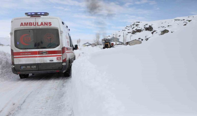 Van’ın Erciş ilçesinde yolu kar ve tipi nedeniyle ulaşıma kapanan kırsal mahallede yaşayan kalp ve tansiyon hastası 95 yaşındaki Gülizar Çağlar, 2 saat süren yoğun çalışmanın ardından hastaneye ulaştırıldı.