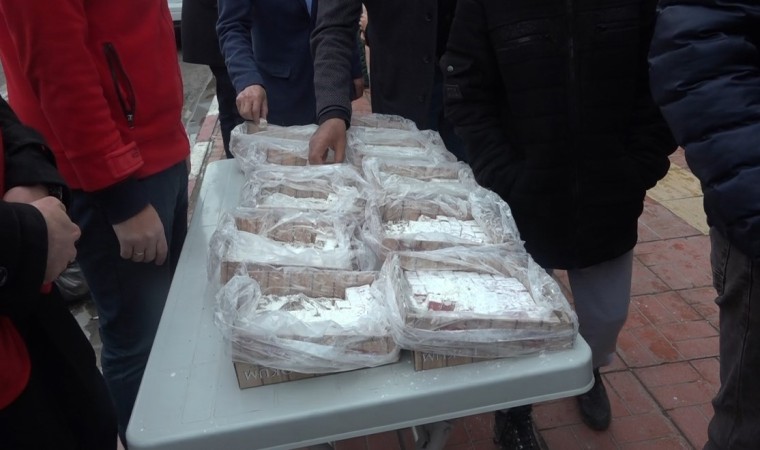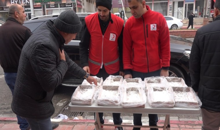 Cami çıkışında Kızılay ekipleri cemaate lokum ikram etti.