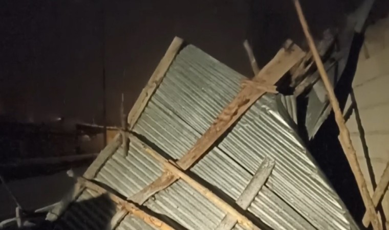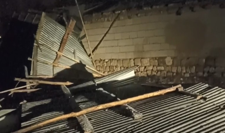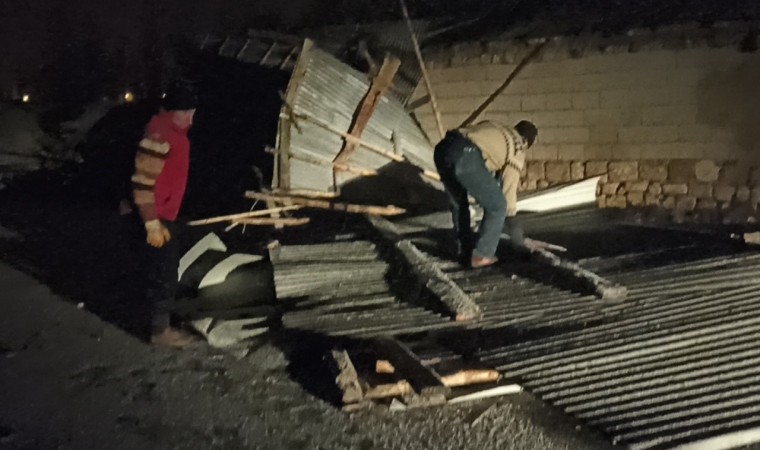 Van’ın Erciş ilçesinde etkili olan fırtına nedeniyle bir evin ve ahırın çatısı uçtu.