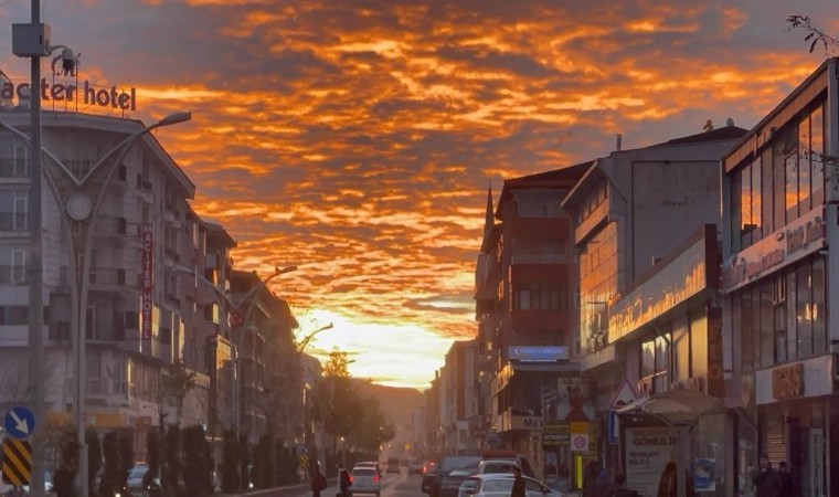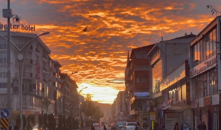 Turuncu, sarı ve kırmızının uyumu ile oluşan kartpostallık gün doğumu görüntüsü vatandaşları büyüledi. Ortaya çıkan manzara apartmanların arasından cep telefonu kamerası ile kayıt altına alınırken, bulutları kızıla boyayan güneş ışıklarının manzarası ise kendine hayran bıraktı.