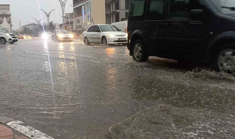 Van’ın Erciş ilçesinde akşam saatlerinde sağanak yağış etkili oldu.