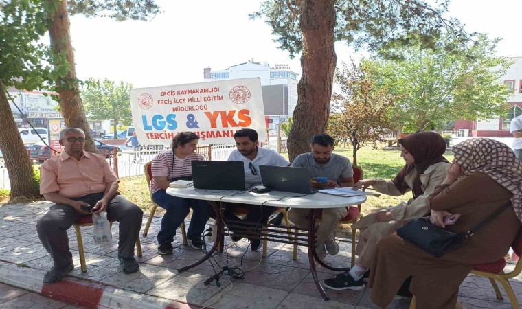 Erciş Milli Eğitim Müdürlüğü ve Erciş Rehberlik Araştırma Merkezi işbirliği ile kaymakamlık bahçesinde kurulan stantta, alanında uzman öğretmenlerle öğrencilere YKS tercih danışmanlık hizmeti veriliyor. Hizmetten memnun kalan öğrenci ve veliler, tercih yapacakları okullar hakkında bilgi aldıktan sonra buradan ayrılıyor.